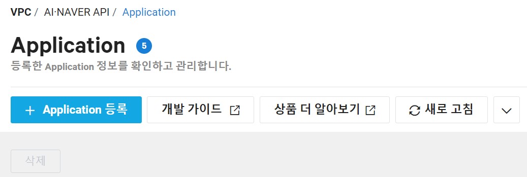 그런 다음 Application 등록을 눌러주세요