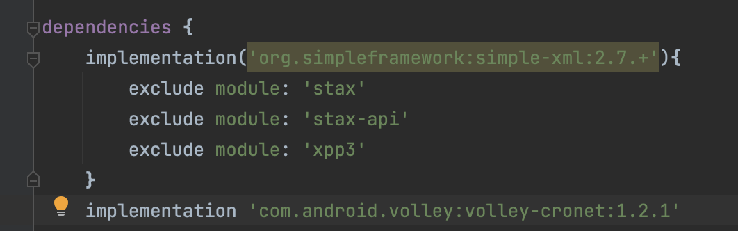 implementation('org.simpleframework:simple-xml:2.7.+'){