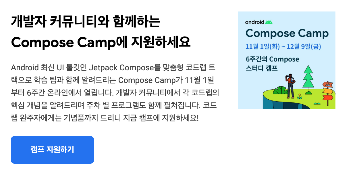 몇 달 전에 구글에서 메일이 왔습니다. Jetpack compose를 써보라는 메일이었고 간단한 튜토리얼을 조금 맛보았습니다.