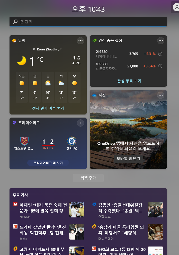 사진, 뉴스, 할 일, 날씨를 한꺼번에 정리한 것 같다.